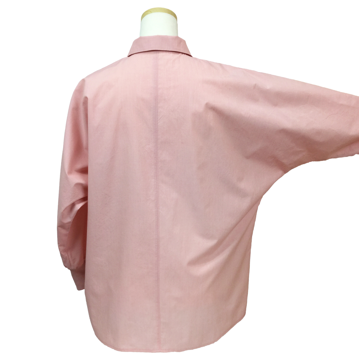 ドルマンスリーブのデザインは女性らしいやわらかなシルエットを作ってくれながら、着脱の際にはゆったりと腕を通すことができ快適です。フロントの開きは比翼仕立てになっており、スナップ釦でラクラク開閉。