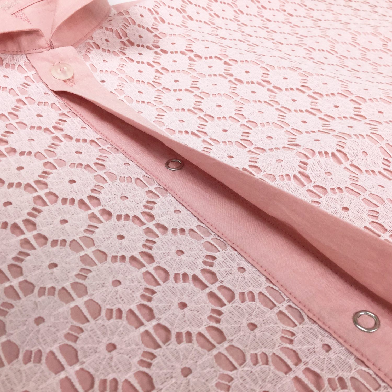 胸元のレースが華やかな印象を与えてくれるブラウス。