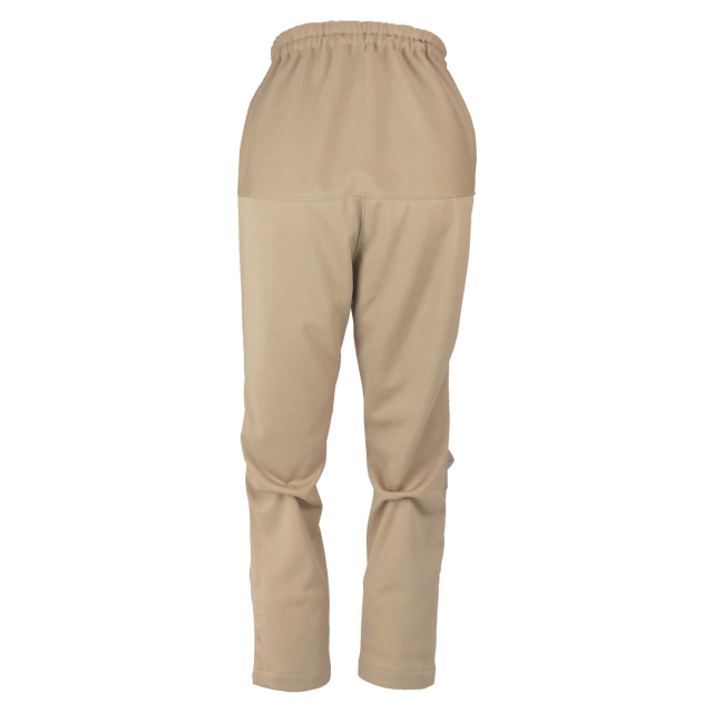 後パンツは座っていて身体になじみやすいニット素材を使用しています。
