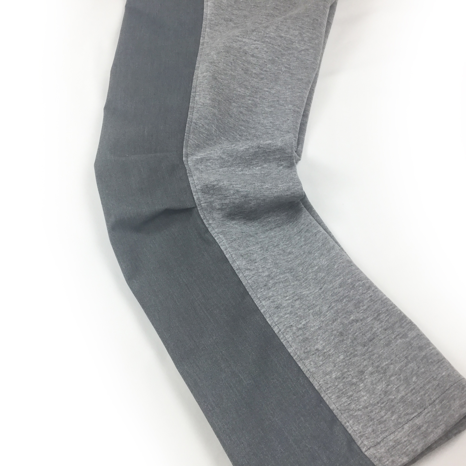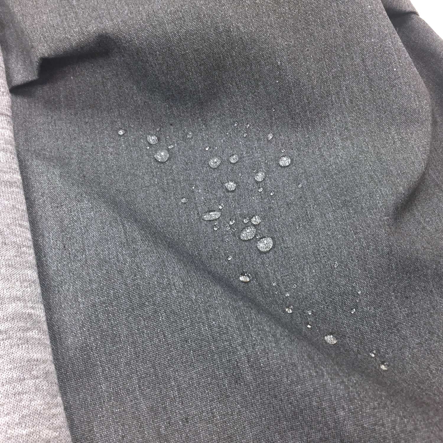 前側には特殊加工で汚れが付きにくく水をはじく素材、後ろ側は座っていて身体になじみやすいニット素材を使用しています。