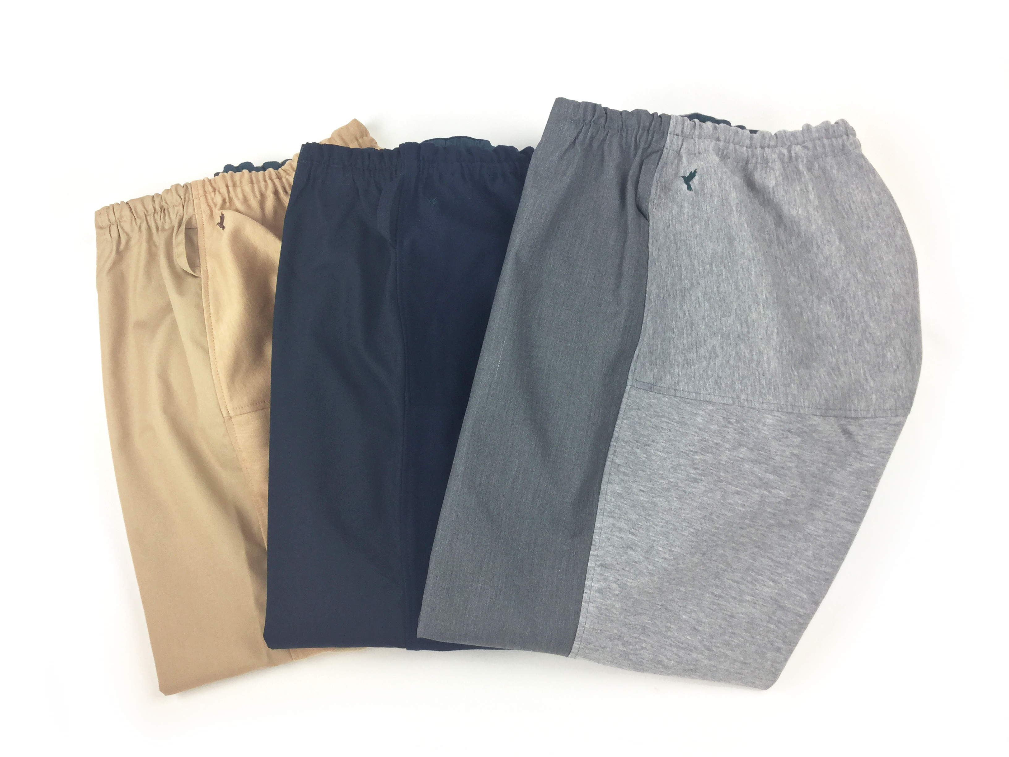 長時間の座位をリラックスして快適に過ごすために考えられた立体構造のパンツ。