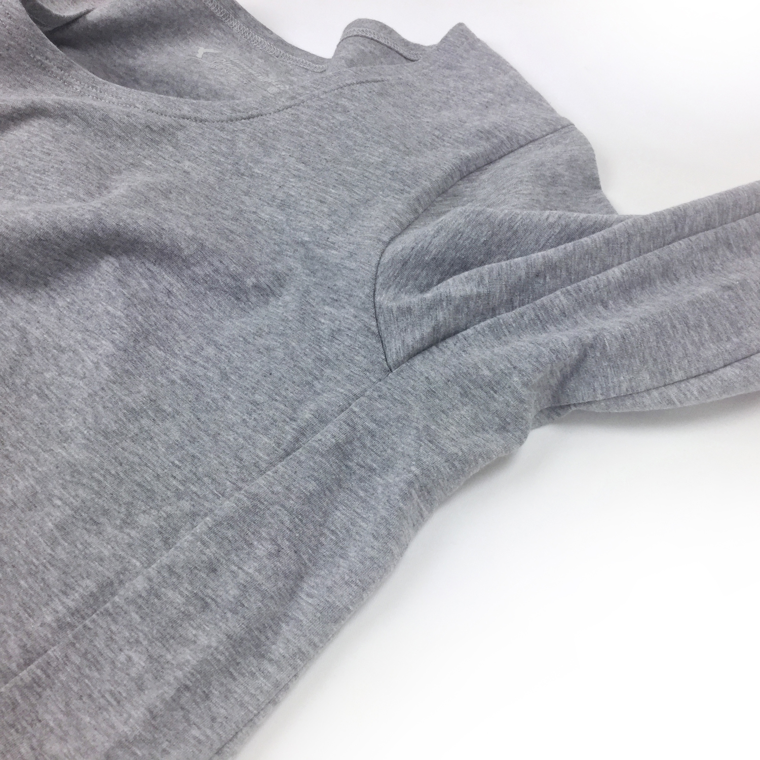 ラウンドネックで肩幅より伸びるストレッチの効いた襟ぐりと、袖下から脇にかけて付けられたの長いマチは肩関節の動きに制限のある方の着脱をサポートします。