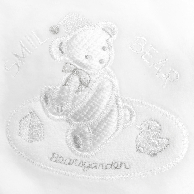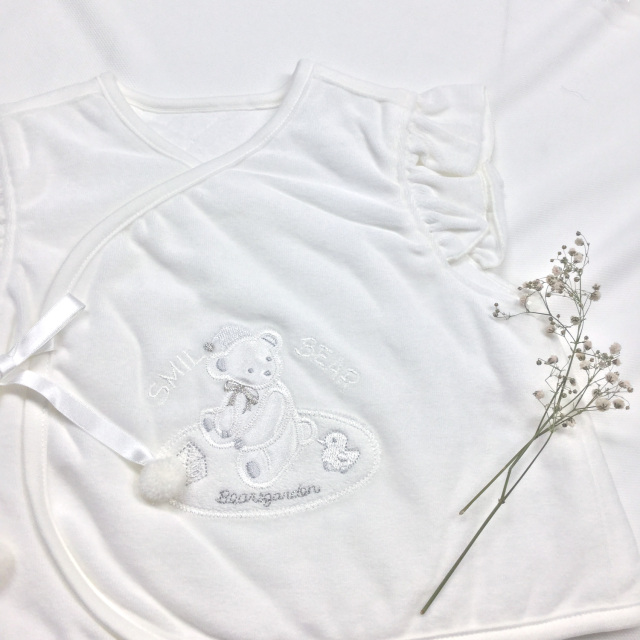 ・くまのワッペンと袖のフリルがポイント
