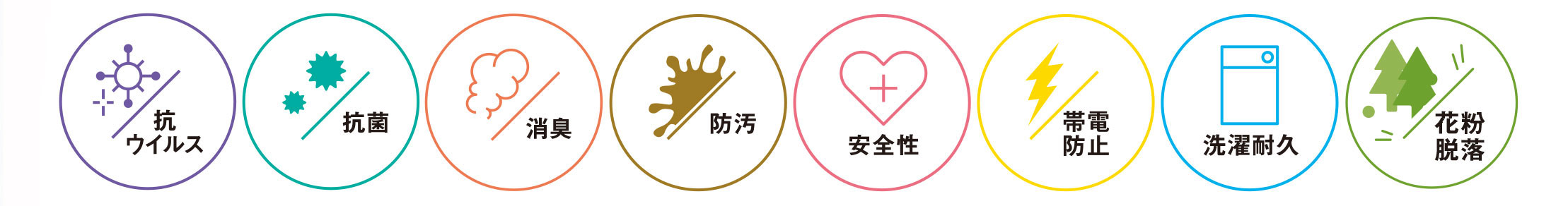 ・抗ウイルス、抗菌性があり繊維上に付着したウイルスや細菌を減少させ増殖も抑制